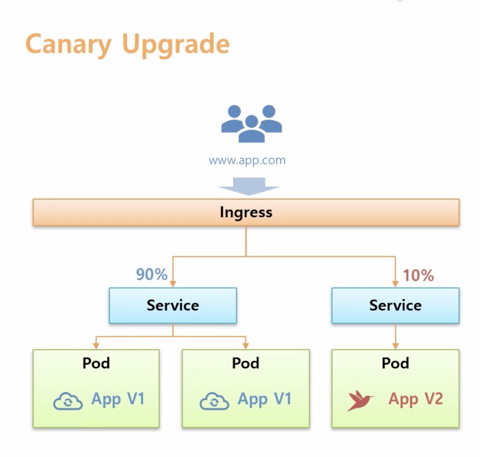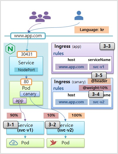 - 인그레스를 사용하면 카나리 업그레이드를 쉽게 할수 있음