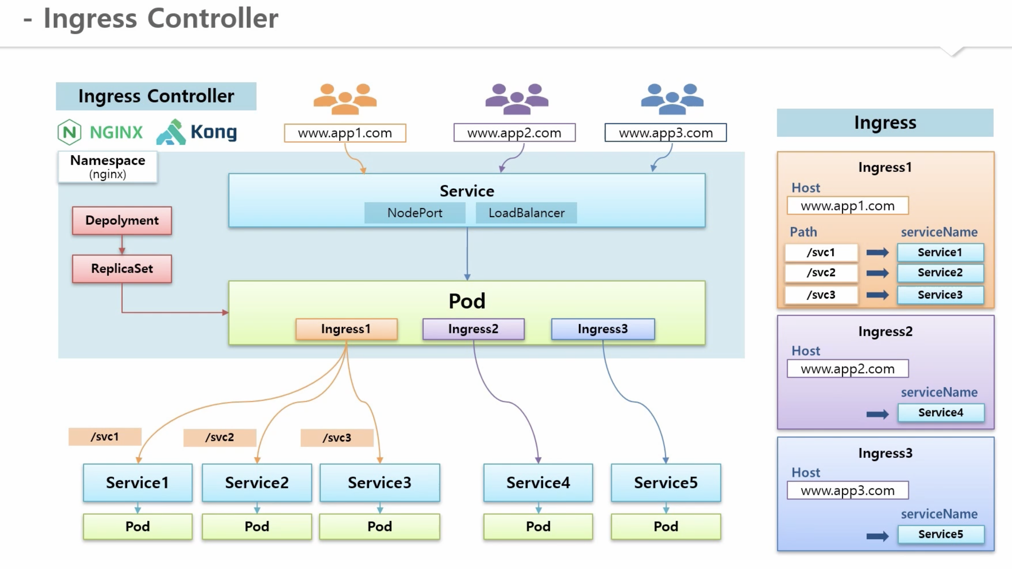 - 실제로 동작시키는 것은 인그레스 컨트롤러